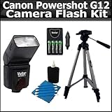 .../ Flash Kit For The Canon Powershot G12 Digital Camera Inclueds TTL Bounce Zoom Swivel Flash For (Canon) Includes Flash Diffuser + 4AA High Capacity Rechargeable NIMH Batteries And AC/DC Rapid Charger + lens Cleaning Kit + 50 Inch Pro Tripod / Charger Plates
